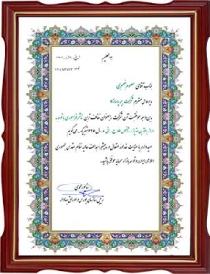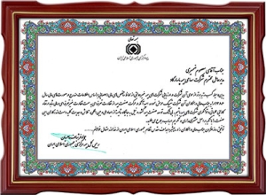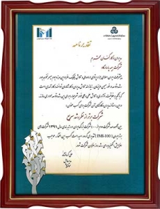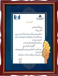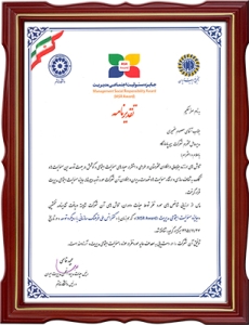 تقدیرنامه هفتمین «جایزه مسئولیت اجتماعی مدیریت» و «کنفرانس ملی فرهنگ سازمانی» با رویکرد رهبری و تعالی