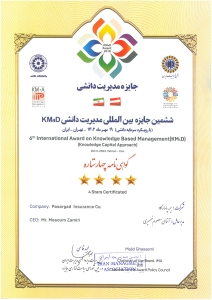 گواهینامه دو ستاره پنجمین جایزه بین المللی مدیریت دانشی