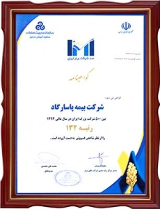 رتبه ۱۳۴ از میان ۵۰۰ شرکت برتر کشور از نظر شاخص فروش در سال ۱۳۹۲