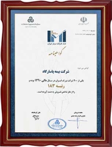 رتبه ۱۸۳ از میان ۴۰۰ شرکت برتر کشور از نظر شاخص فروش در سال ۱۳۹۰