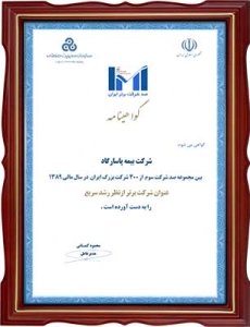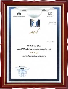 رتبه ۲۰۶ از میان ۴۰۰ شرکت برتر کشور از نظر شاخص فروش در سال ۱۳۸۹