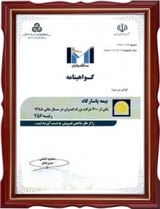 رتبه ۲۵۶ از میان ۳۰۰ شرکت برتر کشور در سال ۱۳۸۸