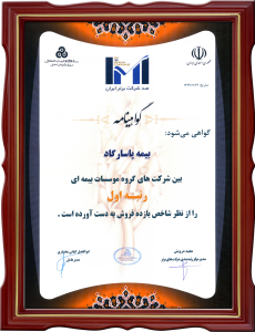 رتبه اول ” شاخاص فروش” در گروه موسسات بیمه ای در رتبه بندی شرکت های برتر ایران-IMI 100